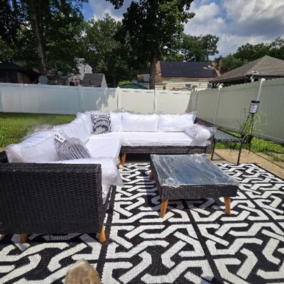 - Easy to Maintain: Crafted from 100% polypropylene with a protective coating, this waterproof rug resists fading and sun damage. For easy cleaning, rinse with water, sweep, wipe with a damp cloth, and air dry.