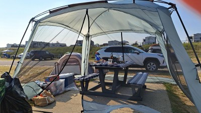 There was plenty of room inside. It was a windy beach trip. A lot of people lost all types of screen houses and it didnt break or blow away.