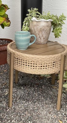 Wicker End Tables Info: Large Table Dimensions: 23.2" L x 23.2" W x 21.7" H. Small Table Dimensions: 19.3" L x 19.3" W x 18.1" H. Weight Capacity: 66 lbs. Assembly required.