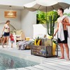 - Poolside Ready Material: Not only is pool float organizer full of hand-woven tropical flair, but it also features a water-safe surface reinforced with a strong steel frame. This unique combination offers a wicker-like look without the same weather issues.