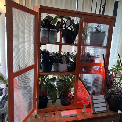 • Solid Construction: The frame of this plant cabinet is made with solid fir wood with outdoor paint for added strength. The transparent 4 mm twin-wall plastic panels allow maximum light transmission while retaining heat for early seed sprouting or for protecting plants late in the season.