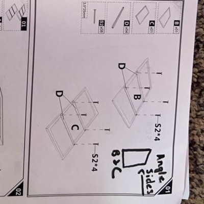 This is definitely cheaply made. Instructions kinda suck and nothing is labeled. I figured it all out. Wood was chipped in spots there is wood frays in the plastic on the doors. Panel B and C are the angle side pieces, none of the wood panels are pre drilled. You definitely need a level putting this together and a helping hand to hold the panels still to screw in the screws. I’d not recommend this to my friends or family.