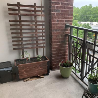 Love the planter! It assembled easily, and it looks really nice on my balcony. It’s small enough that it fits well. The wheels are a nice feature to move the plants around to capture the best sun. The liner for the planter is a great feature too.