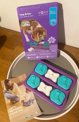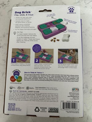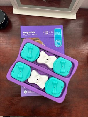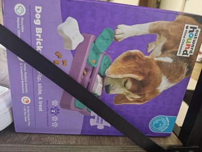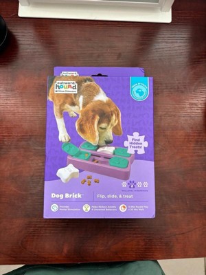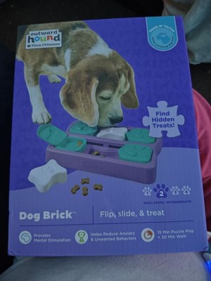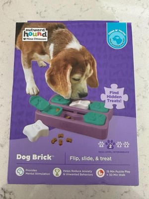 - As one of our most popular intermediate level 2 designs, the Dog Brick interactive puzzle includes additional obstacles and combinations of steps that will keep your dog focused and mentally-stimulated as they search and sniff out the tasty treats!