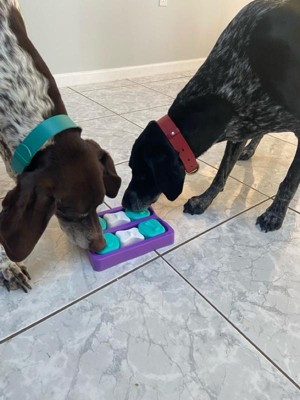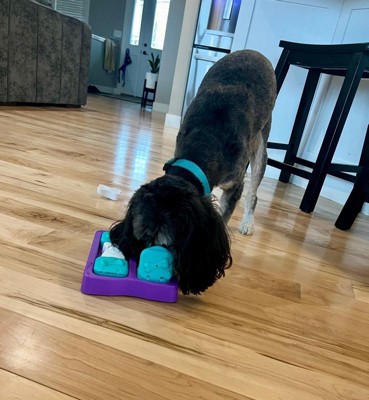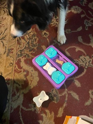 [This review was collected as part of a promotion.] My dog absolutely loves this puzzle. He enjoys trying to figure out. He loves finding the treats when he does figure it out. It’s easy to use easy to fill easy to move things around. It’s great to keep your dog occupied. It will last for a while if that’s something that you need it makes my dog extremely happy and it’s just a greattoy for your dog to remain focused and alert.