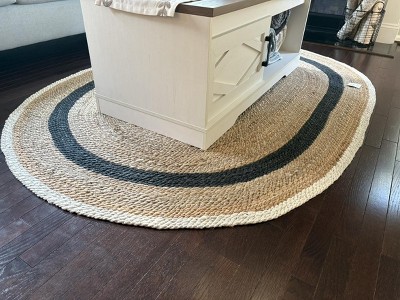 I recently added the Hearth & Hand oval 5' x 7' jute area rug to the foyer of my new home, and I couldn't be happier with the choice. It looks absolutely amazing in the space, giving it a warm, welcoming feel that complements the rest of my decor perfectly. The natural texture of the jute adds an earthy touch, while the subtle color tones really tie everything together. It's not only stylish but also comfy enough for my dog to lay on, which is a huge bonus. Overall, it's a beautiful and functional addition to my home, and I highly recommend it!