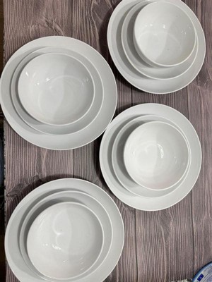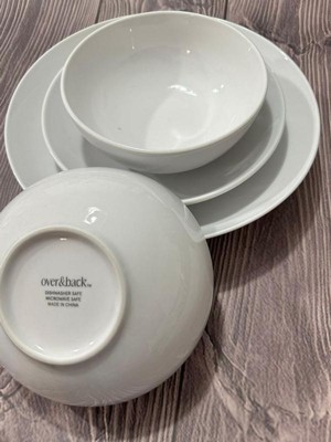 over&back 12pc Coupe Glossy Hand-Finished Porcelain Dinnerware Set White: Microwave & Dishwasher Safe, Service for 4