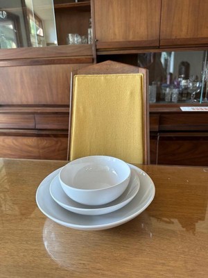 [This review was collected as part of a promotion.] These are so perfect! I've been looking for a restaurant-like shallow bowl for pasta or big salads and these fit the bill. The plain white means I can use these for years to come, and they're a nice, heavy construction that feels like it can withstand standard use and abuse