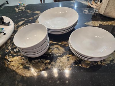 - Sets for 4 Includes: 4x Dinner Bowls, 4x Salad Bowls, and 4x Cereal Bowls