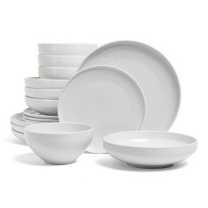 over&back 16pc Coupe Glossy Hand-Finished Porcelain Dinnerware Set White: Microwave & Dishwasher Safe, Service for 4