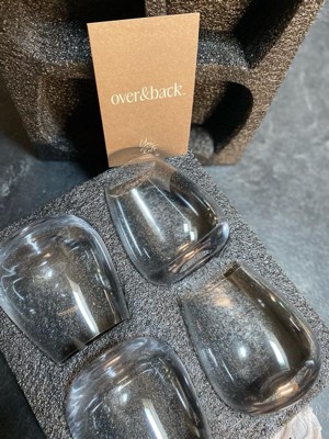 over&back Set of 4 16oz Traditional Classic Stemless Mouth-Blown Glasses Clear: Dishwasher-Safe, Lead-Free