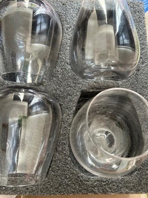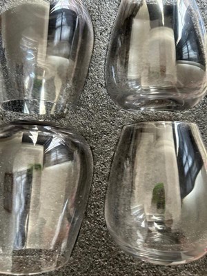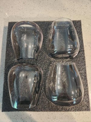 [This review was collected as part of a promotion.] I liked these glasses, which felt nice and thin and so fancier than most. I wasnt too keen on the shape, I guess it really is like a wine glass without the stem, but I feel that a stemless glass should have a wider rim and narrower bottom than it does. The glass itself is somewhat cloudy, idk how else to describe it. I do think these are a bit overpriced for what you get, unfortunately. Price per glass is high. And they were not in a nice presentation box or anything, so not one for gifting. But still a decent option!