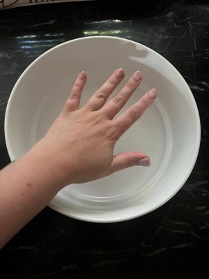 [This review was collected as part of a promotion.] Love this bowl. It has handled a houseful of kids without breaking or chipping. Looks great with any table scape! Size works for all meals sizes!!!