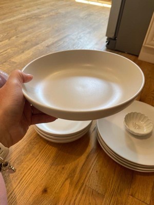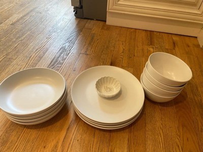 [This review was collected as part of a promotion.] I love this dinnerware set. Lovely sleek and modern design. Feel very much like stoneware vs dishes. Great shallow bowls for pasta nights along with the regular bowls for cereal. Dish set came packed and wrapped thoroughly with no chance for breakage. I would recommend this set.