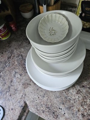 [This review was collected as part of a promotion.] I absolutely love Over & Back Coupe Dinnerware Dish Set. Comes with 4 Dinner Plates, 4 Cereal Bowls, and 4 Dinner Bowls. 12 Piece All-Occasion Place Settings in Semi-Matte White. They are absolutely beautiful and durable at the same time. Coupe design is both classical and modern and will complement most decors. My favorite feature is the slight sloping edge of the plates without a wide edging allowing more plate area to be used. Made from stoneware with a hand finished natural glaze that is safe for both dishwasher and microwave. I would highly recommend it to anyone. The product description was just as described.