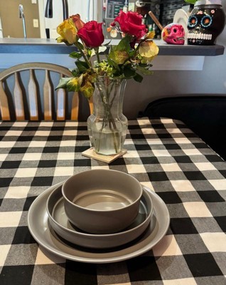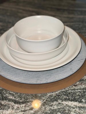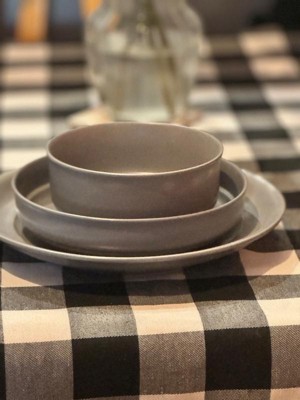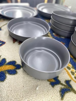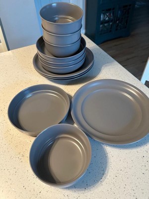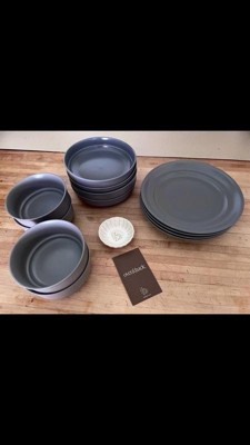 [This review was collected as part of a promotion.] I got this dinnerware set in charcoal. Beautiful solid color! The set includes four cereal bowls, four salad plates, and four dinner plates. Each piece is made from ceramic and feels durable. The design features a beautiful solid charcoal color with a rim around the plates that looks modern and sleek. Cleaning is straightforward as the dishes don’t stain easily, even with frequent use. Overall, this is a reliable and stylish dinnerware set.