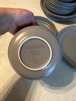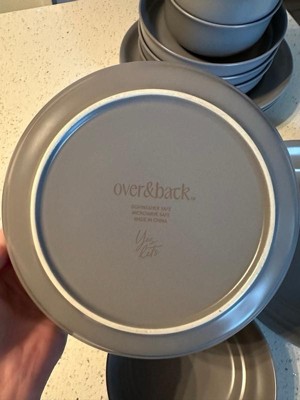 over&back 12pc Rimmed Hand-Finished Stoneware Dinnerware Set Semi-Matte