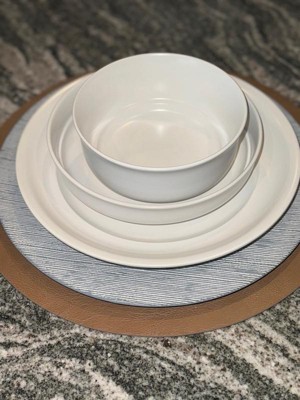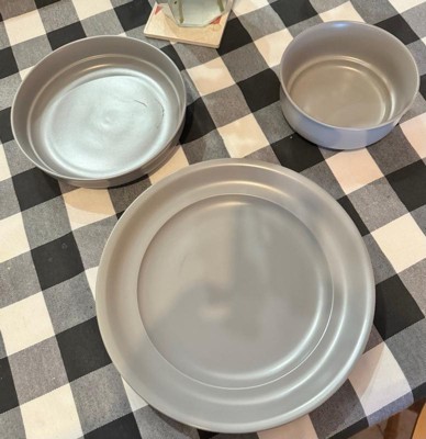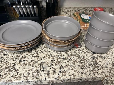 [This review was collected as part of a promotion.] This is a really nice dinnerware set. It came with 4 plates, 4 salad bowls and 4 regular bowls. It’s a nice gray color. Heavy and sturdy. Dishwasher safe. Microwave safe. Haven’t had any scratching issues yet. When I’m ready to replace my other dishes I will definitely be looking into this brand.