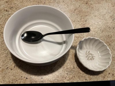[This review was collected as part of a promotion.] I love them, my husband hates them. I like that they are modern looking the “salad plates” which are really low bowls are so super cute. I think they look amazing on the table and they’re excellent for Ramen. The dishes are great quality heavy but not too heavy and they have a mat finish on them that I really like. The bowls don’t nest very well so it’s a little awkward in my cabinet but overall I think we’re going to get a second set so we have eight place settings. The packaging that it came in was really great. When I got the box 2 of the four corners were crushed in, and I was certain that the dishes would be broken however, I was pleasantly surprised that not even a jostle no chipping no problems. It’s great. they also gave the cutest little condiment bowl as a thank you present. It’s really cute. Definitely my new favorite and we’re getting rid of the old dishes right away.
