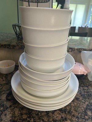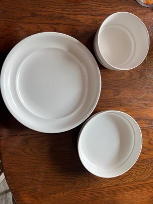 [This review was collected as part of a promotion.] This dish set is perfect for all types of food servings. A pretty, basic white color in a variety of sizes. Everything you need for any meal. The ceramic seems high quality, thick but still light to hold. Easy to clean and doesn’t hold food residue.