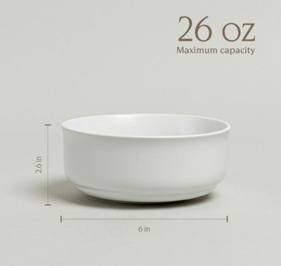 [This review was collected as part of a promotion.] I LOVE these cereal bowls! They are the perfect size and depth! The shape is also perfect. I love the sleek modern design and the white color matches anything. The material is great and I haven’t had any issues with cracking or discoloration. I