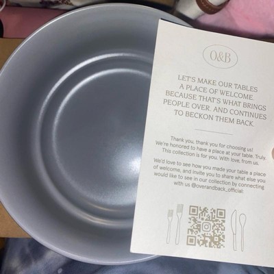 At over&back we believe every meal is special. We believe in quality pieces that are meant to be used every day and designed for easy care. Our Rimmed dinnerware is a timeless silhouette with a modern feel. Our dinnerware is made from stoneware and is microwave and dishwasher safe. The semi-matte glaze is a unique finish that gives this dinnerware a modern feel. Our colors are all designed to mix and match so you have unlimited creativity to set the table your way. Let's make our tables a place of welcome because that's what brings people over, and continues to beckon them back.