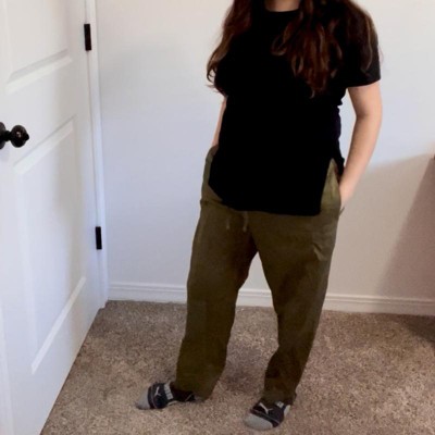 [This review was collected as part of a promotion.] These pants are very trendy and pretty comfortable to be in at 8 months pregnant. The tie is adjustable and not just for looks so you can make it tighter or looser as you grow. I did order my normal size and had some room. They are a little bit short on me, however I am a tall girl, 5’10. They are light weight and good for summer months but also will be great to wear with a sweater in the winter months. They fit a little bit boxy so if you are looking for something more flattering, I would avoid these. I received an incentive to write this review.