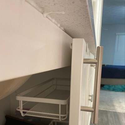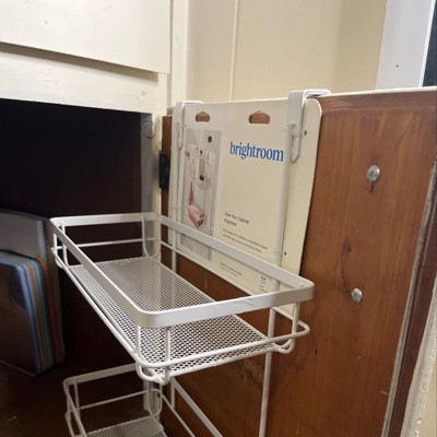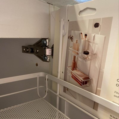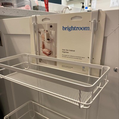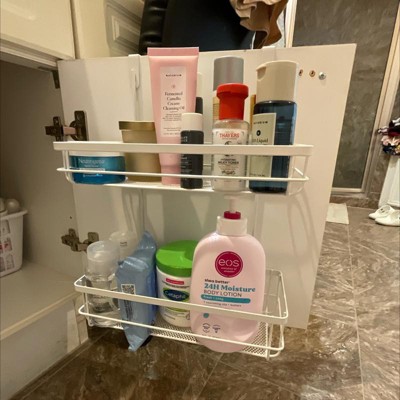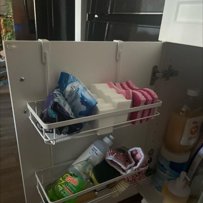 - Over-the-cabinet tiered storage great for keeping your bathroom space tidy and organized
