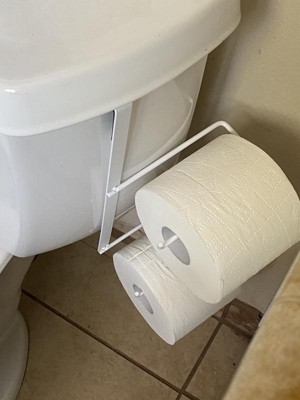 Bring sleek style and convenient storage to your powder room with the Over-the-Tank Toilet Paper Holder from Brightroom™. Made from steel for a modern look and lasting use, this over-the-tank toilet paper holder is designed to hold up to two rolls at a time to make sure you never run out of toilet paper. Plus, it's easy to install and use — just hang it on one side of the tank to easily dispense toilet paper. Use this over-the-tank toilet paper holder to save space in a smaller bathroom, or in addition to a wall toilet paper holder for extra storage.