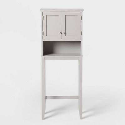 Over Toilet Cabinet Double Door Bathroom Storage Organizer White Toilet Rack with Adjustable Inner Shelf Open Storage Shelf