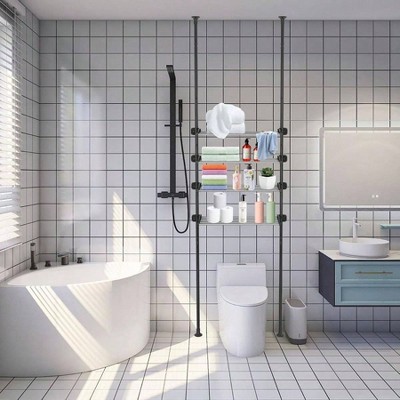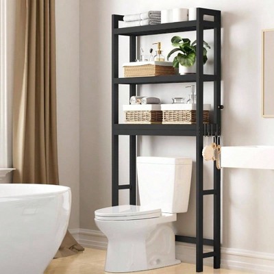 Over Toilet Storage with 8 - Tier Shelf Mass - Storage Open Rack Freestanding Bathroom Organizer Black Space Saver