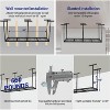 - 4. Tip: Our Overhead Garage Storage Rack includes 6 versatile hooks for hanging tools or bags, optimizing your storage possibilities. Additionally, the integrated network wiring allows you to connect power tools or lights conveniently, enhancing the functionality of your workspace while ensuring everything remains organized.
