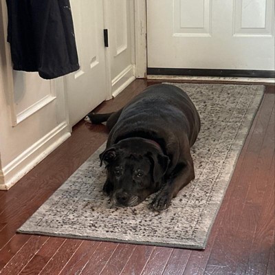 A: The rug features a skid-resistant latex backing to help keep it securely in place.