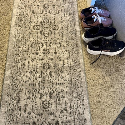 A: Thanks for your interest in this beautiful Overprint Persian Splatter Tufted Rug - Threshold™. It features intricate patterns in different hues of gray. - Cheryl