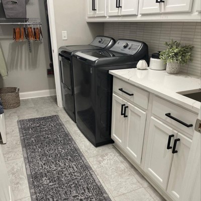 A: The rug is machine-washable and can be machine dried. Avoid pulling loose yarns and trim with scissors if needed.