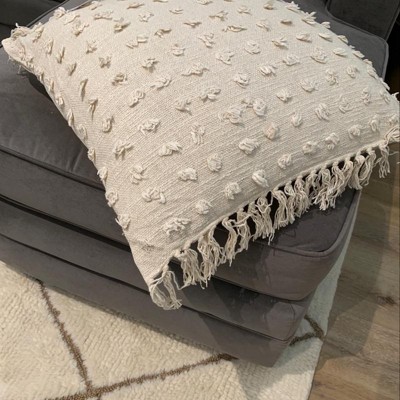 Add some texture to your décor with this fabulously fringed throw pillow. This 100% Cotton throw pillow features fringed edges and a fringed dot pattern in a neutral color that is sure to match any room in your home. Zipper closure for easy removal and cleaning. Recommend spot cleaning as needed using a gentle cleanser.