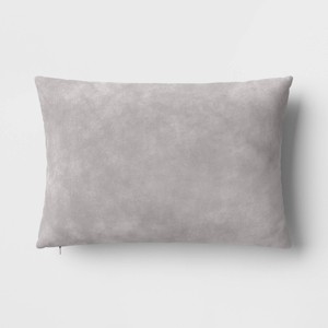 Lend cozy style to your sitting space with this Gray Oversized Washed Cotton Velvet Lumbar Throw Pillow from Threshold™. Featuring a soft and smooth, 100% cotton velvet shell with soft filling, this oversized lumbar pillow adds comfort and style to any chair, sofa or bed it's tossed on. Best of all, it's designed with a hidden zip closure for easily removing the pillow cover. Designed in a gray hue with a washed finish, it's sure to complement a variety of decor styles.