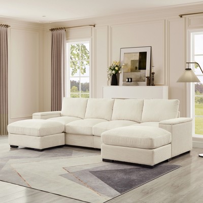 Oversized 112.6" Chenille U-Shaped Modular Sectional Sofa with 2 Storage Ottomans and Storage Drawers under Each Seat, 5-Piece Free combination