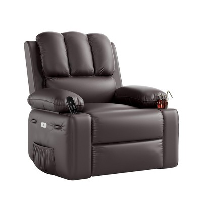 Oversized 27" Coffee Recliner Chair with Heat and Massage, 360° Swivel and Manual Rocking Function, Remote Control for Ultimate Comfort