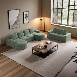 Oversized Chenille Cloud 6-Module U-Shaped Sectional Sofa with Chaise