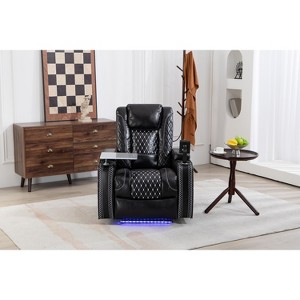 Oversized Faux Leather Zero Gravity Recliner with Storage Armrests, Cup Holder, Laptop Table, Phone Holder, and LED Reading Light