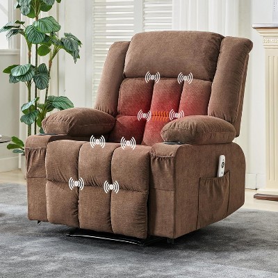 Experience ultimate comfort and relaxation with our Oversized Manual Recliner Chair, designed to elevate your living room experience. This widen overstuffed single sofa offers generous cushioning and support, perfect for unwinding after a long day. Featuring three adjustable positions, you can easily find your ideal angle for reading, watching TV, or taking a nap. Our recliner chair is equipped with advanced massage functions, providing soothing relief to your muscles and promoting relaxation. Enjoy the benefits of a massage recliner chair with heat, designed to enhance comfort and improve circulation. Whether you call it a massage recliner, massage chair recliner, or recliner chair with massage, this chair delivers a premium massage experience right in your home. Convenience is key with two side pockets to keep your essentials within reach and two cup holders to hold your favorite beverages. The manual reclining mechanism ensures smooth and quiet adjustments without the need for power, making it a versatile addition to any living room. Key Features:- Oversized, widen overstuffed design for maximum comfort- Three reclining positions to suit your preference- Integrated massage functions with heat for enhanced relaxation- Two side pockets for convenient storage- Two cup holders for easy access to drinks- Manual recliner for smooth, quiet operation Upgrade your living space with this versatile massage recliner chair that combines comfort, functionality, and style. Perfect for anyone seeking a recliner with heat and massage, this chair is a must-have for your home relaxation needs.