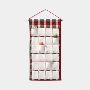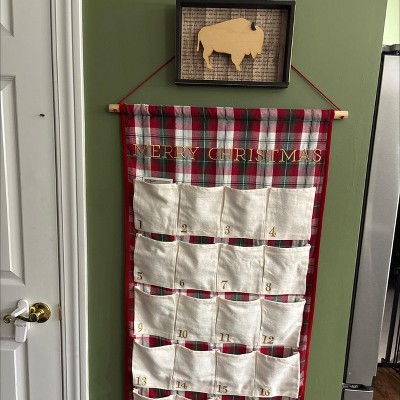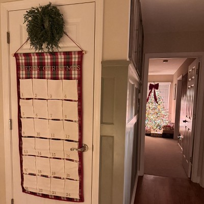 Help your family count down the days until Christmas with this Oversized Merry Christmas Countdown Calendar from Threshold™. Made of cotton, this countdown calendar features a plaid design with embroidered "Merry Christmas" text on top for festive cheer. It comes with mini pockets with dates from 1 to 24 with little surprises inside them. Plus, the top loop allows you to easily hang it from a peg or screw.