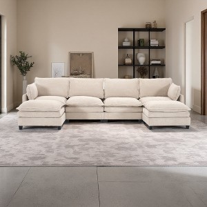 Oversized Modular Velvet U-Shaped 4-Seater Sectional Sofa with 2 Ottomans