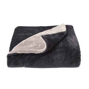 - PRODUCT DETAILS- Materials: 100% Polyester. Flannel Face: 270 GSM. Faux Shearling: 250 GSM. Dimensions: 70" L x 60" W. Machine Wash Cold, Tumble Dry Low. Do Not Bleach. Do Not Iron. Color: Raven Dark gray and Stone Light gray