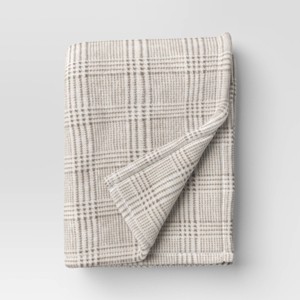 Oversized Printed Glen Plaid Primalush Throw Blanket Gray/Ivory - Threshold™ - 1 of 4