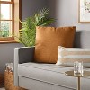 Complement your sofa or armchair with the textural elegance of this Oversized Square Cotton Boucle Reversible Throw Pillow with Linen from Threshold™. This 24-inch square pillow showcases a reversible design with a caramel-color boucle front and beige linen reverse, adding a depth and dimension to your space. Featuring a cotton- and linen-blend exterior and a well-filled interior, this oversized throw pillow adds ample comfort and style to your space.