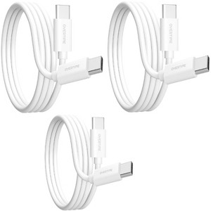 Overtime Certified USB-C to USB-C 10ft cable, Fast Charging & Data Transfer, 3-Pack, White