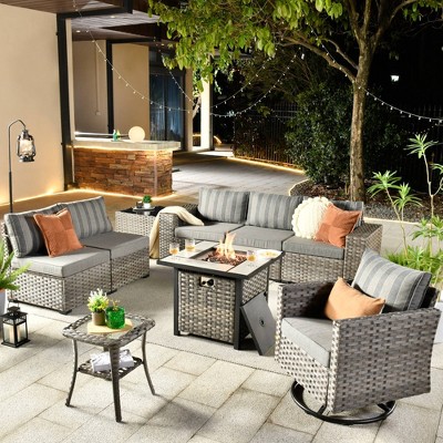 - Purchase includes: 4 armless seats, 2 coner seats, 4 armed seats, 2 coffee tables and 1 fire pit (free lava rocks and a cover inlcuded for fire pit), allowing you to treat up to 10 people for gatherings with friends and families