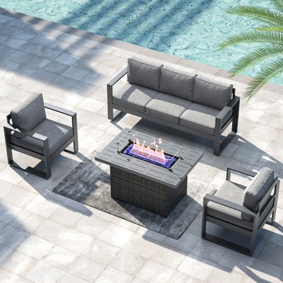 - Purchase includes: 2 middle seats, 1 coner seat, 2 armed seats, 1 coffee table and 1 fire pit (free lava rocks and a cover inlcuded for fire pit), allowing you to treat up to 5 people, allowing you to easily host gatherings with friends and families